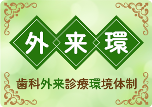 外来環(歯科外来診療環境体制)とは、厚生労働省が定めた施設基準の1つで、歯科診療を必要とする方が、安心して治療を受けられる体制が整った施設であることを意味しています。認定を受けるためには、スタッフ数・衛生管理状態・設備・救命道具の設置など、多くの項目をクリアする必要があり、外来環は信頼の証と言えます。